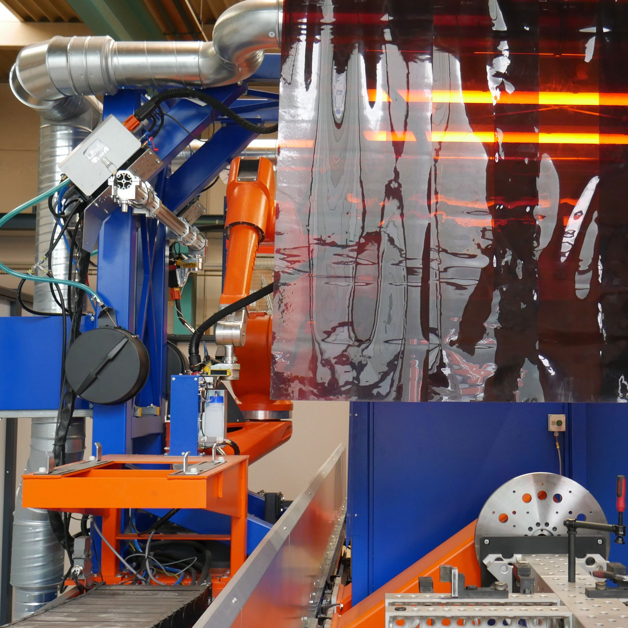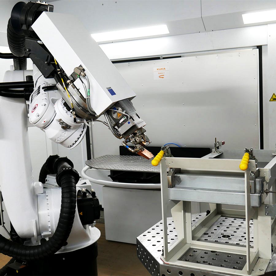 Durch die Kombination aus Roboterarm und Positionierachsen wird eine besonders exakte und reproduzierbare Steuerung des Schweißprozesses bei komplexen Geometrien erreicht.